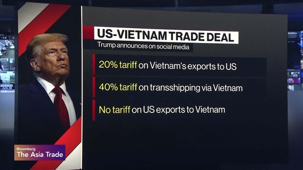 A 20% tariff will be placed on Vietnamese exports to the US, with a 40% levy on any goods deemed to be transshipped through the country, Trump said in a social-media post on Wednesday. Trump said that Vietnam had agreed to drop all levies on US imports.